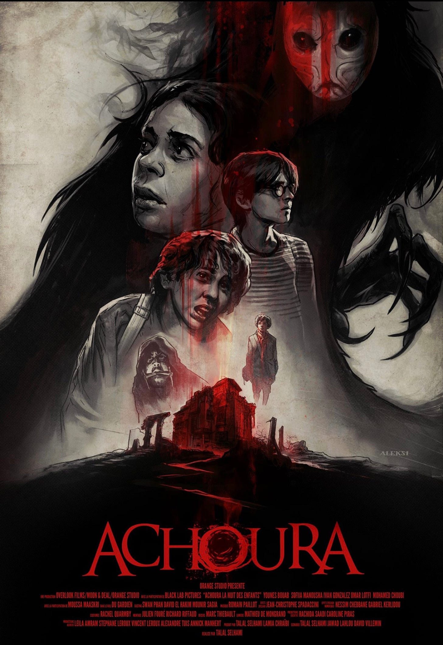 Présenté comme le premier film d’horreur jamais tourné au Maroc, Achoura s’inscrit dans la veine satanique du Sheitan de Kim Chapiron, même si contrairement à cette bande occidentale de 2006 il se déroule pour sa part de l’autre côté de la Méditerranée, en lorgnant gentiment d’un point de vue scénaristique du côté du Ça de Stephen King, tout en véhiculant son lot de terreurs autochtones en faisant explicitement référence dans son titre à un djinn du folklore maghrébin. Avec son générique animé n’ayant rien à envier à certaines productions hollywoodiennes bande originale comprise (mention spéciale à la partition symphonique de Romain Paillot), cette co-production franco-marocaine co-écrite et réalisée par Talal Selhami (le jeu vidéo ‘’Tell me Why’’, Mirages) ne manque pas d’atouts à commencer par des SFX méritoires pour un tel projet au budget forcément contraint. Sans faire montre d’une originalité débordante côté script avec son histoire d’enfants aux prises avec une créature surnaturelle revenant les hanter à l’âge adulte, ce récit d’amitié mise à mal par une entité vengeresse à l’effrayante constance se regarde sans déplaisir, chaque apparition de cette chose implacable étant soulignée par des effets sonores tonitruants à la manière de ce que le cinéma japonais ou coréen a pu nous offrir ces dernières années dans le domaine. Le tout s’avérant remarquablement photographié et filmé avec allant par un metteur en scène à suivre de près tant il manifeste ici un véritable attachement pour le genre, manipulant au mieux les codes de ce dernier comme le spectateur embarqué d’emblée dans une intrigue à rebondissements truffée de jump-scares.